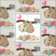 one side of the branch and a doodle-style rose bouquet on the other side. Below them is an arrangement of colourful hand-drawn flowers. This adorable sloth also has pink rosy cheeks and 3 cute little hearts on his butt. Light yellow background colour. Would make adorable pyjamas or other comfy clothes for lazing around.