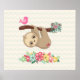 A poster with an illustration of a cute brown sloth hanging upside down. This funny little guy is holding onto a branch which has a little pink bird on