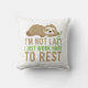 This throw pillow has a cute brown sloth and the saying "I'm not lazy I just work hard to rest" against a white background.