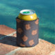 Cute Brown Teddy Bear Face Pattern Dark Blue Can Cooler