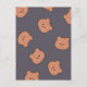 Cute Brown Teddy Bear Face Pattern Dark Blue Postcard