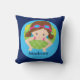 Cute Brunette Swim Girl with Goggles Custom Blue Cushion