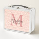Cute Brushed Pink Heart Pattern Monogram Metal Lunch Box
