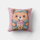 Cute Bubble Tea Bear Illustration – Kawaii Style Cushion