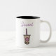 Cute design of bubble tea with purple and grey theme. Modern simple grpahic cool artwork of popular bubble tea drink with pearls.