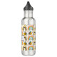 Water bottle with a cute patterned background. Whimsical bees and rainbows with little hearts and stars scattered around. Adorable and delightful.