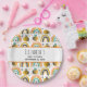 Baby shower or birthday event paper plates with a cute patterned background. Whimsical bees and rainbows with little hearts and stars scattered around. Adorable and delightful.
