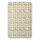 A bath mat with a cute patterned background. Whimsical bees and rainbows with little hearts and stars scattered around. Adorable and delightful.