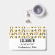 A name tag with a cute patterned background. Whimsical bees and rainbows with little hearts and stars scattered around. Adorable and delightful.