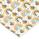 Table runner with a cute patterned background. Whimsical bees and rainbows with little hearts and stars scattered around. Adorable and delightful.