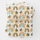 Wrapping paper sheets with a cute patterned background. Whimsical bees and rainbows with little hearts and stars scattered around. Adorable and delightful.