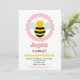 This girl's birthday invitation features a funny fat bumble bee with pink polka dot and striped background.