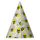 Yellow and black bumble bees as a repeat pattern with some flowers, hearts, swirls, twirls, and bee trails.