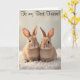 Two adorable rabbits sit side by side on a sheepskin on this totally cute and fun birthday card for a friend.