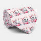 A tie with an illustration featuring 2 white furry bunnies sharing a big pink heart. The girl bunny is wearing a cute bow on her head and heart-shaped glasses. The boy bunny is wearing an adorable little suit with a tie.