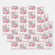 Wrapping paper sheets with an illustration featuring 2 white furry bunnies sharing a big pink heart. The girl bunny is wearing a cute bow on her head and heart-shaped glasses. The boy bunny is wearing an adorable little suit with a tie.