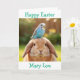 Cute Bunny and Blue Budge Personalized Easter Card