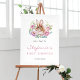 Ask guests not to wrap their gifts with this baby shower display card. It features a watercolour illustration of a cute rabbit with a pink flower wreath. Personalise by adding your details. This bunny display card is perfect for gender-neutral baby showers. Matching items are available.