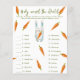 Gender neutral baby shower invitations. Featuring the saying 'A LITTLE BUNNY IS ON THE WAY!', an illustration of a watercolor bunny (rabbit) with carrot in paws, and many orange colour carrots. Matching items available.