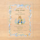 Celebrate the upcoming arrival of your little one with this classic storybook-inspired acrylic baby shower invitation. Featuring a charming, hand-painted watercolor bunny holding a carrot, this design is framed by delicate blue ribbons, whimsical bows, and soft garden florals. It is made to be transparent and clear with the images and text showing clearly. It is strikingly different and beautiful!