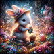 Cute Bunny Colourful Sparkling Garden Easter Holiday Card