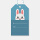 A funny Happy Easter gift tag: it comes with a white cute bunny with pink ears in Kawaii style on blue background tones.