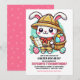 Invite friends and family to an unforgettable Easter egg hunt and birthday celebration with this adorable personalised invitation! Featuring a cute bunny explorer with a basket of colourful eggs and a treasure map, this design is perfect for adding a playful touch to any springtime party.