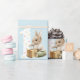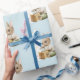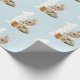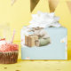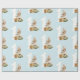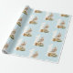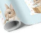 Celebrate your child's first birthday with this cute bunny birthday gift wrap. The design features a bunny unwrapping a birthday balloon. The background is a subtle light blue pattern.