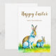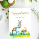 Cute Bunny Rabbit watercolor custom happy easter holiday card.