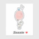 A vinyl decal with a whimsical white bunny holding a big pink balloon floating up in the air. A little bluebird sits on top of the balloon, whistling a tune surrounded by song notes.