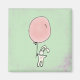 A bmagnet with a whimsical bunny holding a big pink balloon floating up in the air.