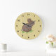 Cute Bunny in Clover with Wood Background Large Clock