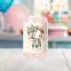Cute Bunny in Overalls with Straw Hat & Bow Can Glass