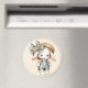 Cute Bunny in Overalls with Straw Hat & Bow Magnet