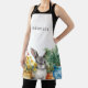 Customise this apron with your name. Cute grey and white bunny surrounded by flowers in terracotta pots. Perfect for Easter Egg activities and gardening.