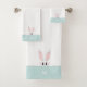 Cute Bunny & Monogram on Light Blue Teal & White Bath Towel Set