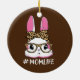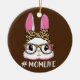 Cute Bunny Mum Life Leopard Messy Bun Glasses Ceramic Ornament