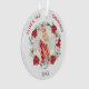 Christmas elegant double sided ornament featuring a cute winter bunny in the poinsettia wreath and snowy forest in the background. Easily personalise the text. - Kate Eden Art