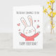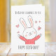 This birthday card features an adorable and heartwarming design, perfect for making someone's special day even more delightful. The front showcases a cute illustration of a smiling bunny in a polka dot sweater, surrounded by little hearts, along with the sweet pun "No Bunny Compares to You." Inside, there is space for a personalised message, allowing you to add your own special greeting. Ideal for anyone who loves cute and charming designs, this card combines fun and personalisation to create a memorable birthday wish.