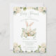 Cute little watercolor bunny rabbit in a wicker basket and white hydrangea flowers with soft green leaves. . So cute for that baby boy or girl shower. 100% customer satisfaction with “Zazzle”