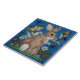 One of my tile mural designs showcased on a tile trivet. On a Dutch-blue background, a grey - brown cottontail bunny rabbit and brightly coloured stylised flowers and strawberries have a folk art feel. Unique Easter decor and perfect for everyday use or display as well. Original whimsical unique artwork & design by Tuzi Williams.