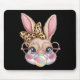 Cute Bunny Rabbit Face Leopard Bow Girls Happy Eas Mouse Pad
