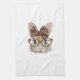 Cute Bunny Rabbit Face Leopard Coquette Bow Glasse Tea Towel
