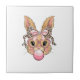 Cute Bunny Rabbit Face Leopard Glasses Girl Happy Ceramic Tile