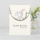 This adorable Easter card features a delightful illustration of a white rabbit having a wonderful time on a swing amidst lush greenery. It's a delightful way to send warm wishes during this special festive season. Illustrated and designed by Patricia Alvarez.