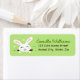 Cute return address labels featuring a cartoon illustration of a little white rabbit peeking out of a hole in the ground. Customisable name and address.