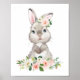 Cute Bunny, Rabbit, Pink Flowers, Girl Nursery Poster