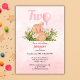 Cute Bunny Turns Two Pink Girls 2nd Birthday Invitation