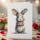 The design has a soft, illustrative look with gentle gray, blush, and cream tones, giving it a cozy, storybook feel. Clean white space keeps the bunny front and center, making it easy to pair with handwritten notes or simple envelopes.