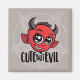 Vector cartoon illustration of a devilishly cute little devil with big eyes with Cute But Evil text. Keywords: devil, hell, cute, demon, evil, satan, halloween, monster, horns, horror, adorable, sweet, devilishly, devilish, precious, endearing, loveable, lovely, appealing, engaging, delightful, dear, darling, winning, winsome, charming, enchanting, attractive, pretty, adorbs
